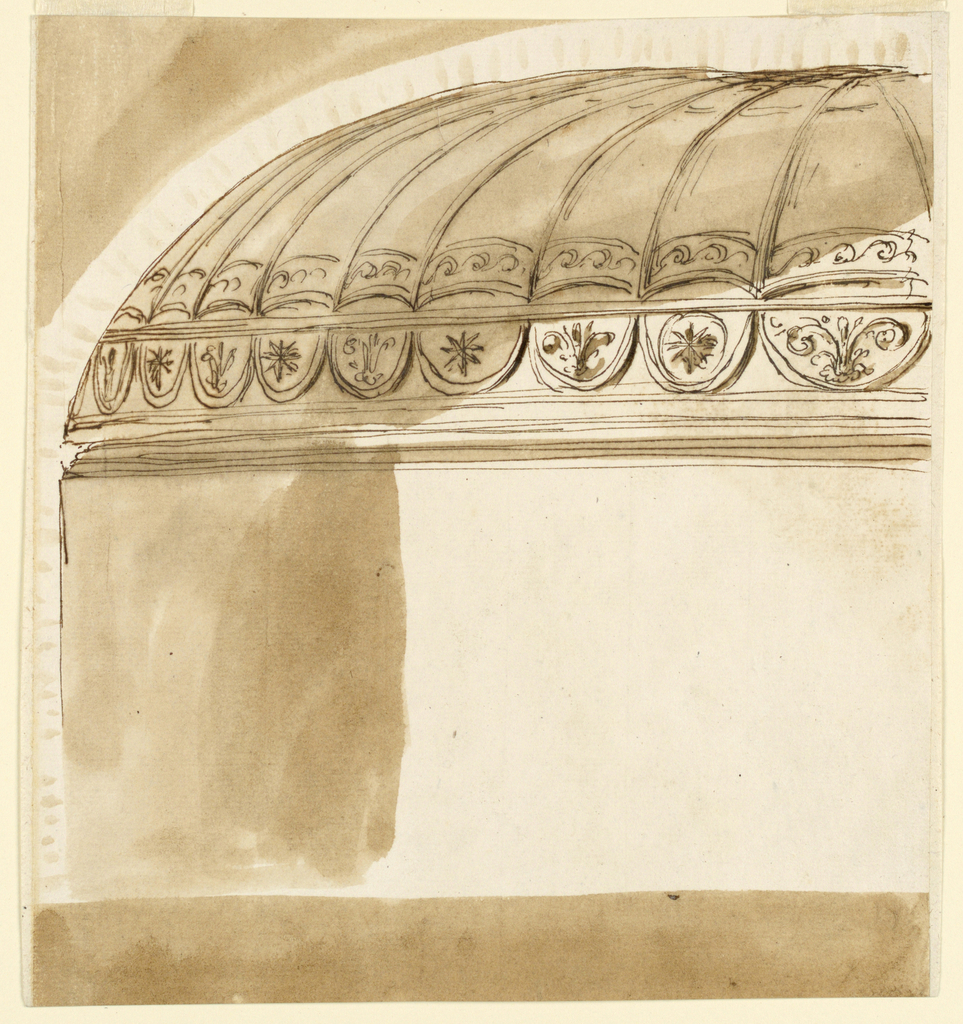 Drawing, Decoration for low dome of a room; Designed by Giuseppe Barberi (Italian, 1746–1809); Italy; pen and brown ink, brush and brown wash on off-white laid paper, lined; Image: 22.4 x 20.4 cm (8 13/16 x 8 1/16 in.); Museum purchase through gift of various donors and from Eleanor G. Hewitt Fund; 1938-88-2005