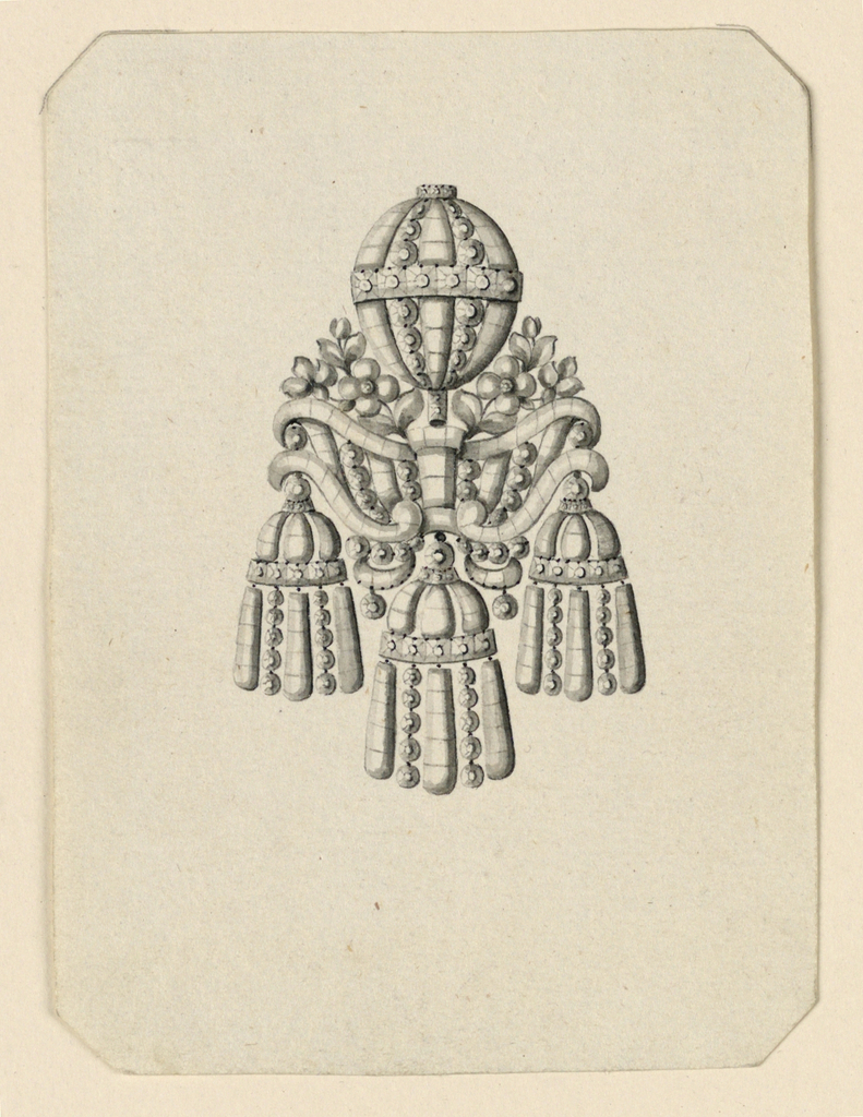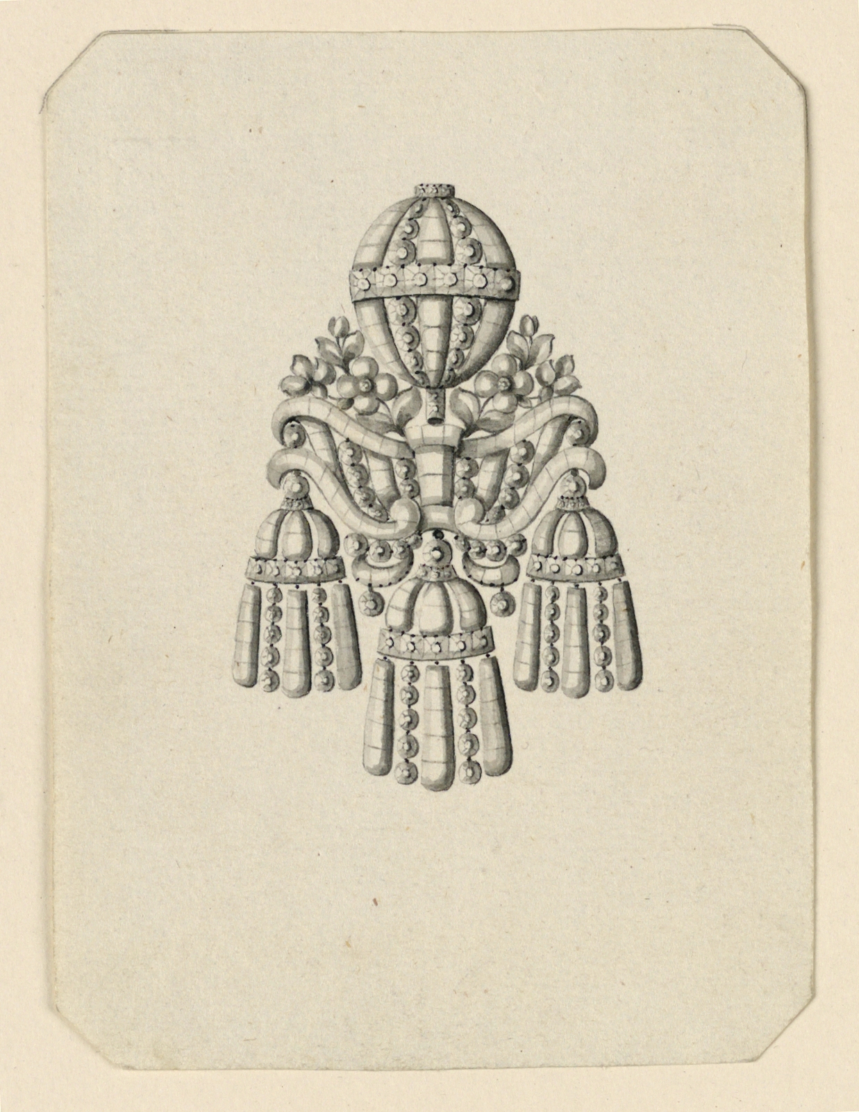 Drawing, Design for an Earring; Italy; pen and black ink, brush and gray watercolor on light green paper; 12.5 × 9.2 cm (4 15/16 × 3 5/8 in.); Museum purchase through gift of various donors and from Eleanor G. Hewitt Fund; 1938-88-830