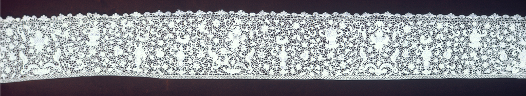 This is a Border. We acquired it in 1950. Its medium is linen and its technique is needle lace, late 17th to early 19th c. It is a part of the Textiles department.