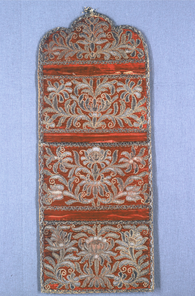 Wall Pocket (Italy); silk, metal; H x W: 51.8 x 20 cm (20 3/8 x 7 7/8 in.); Gift of Richard C. Greenleaf Esq. in memory of his mother, Adeline Emma Greenleaf; 1950-121-52