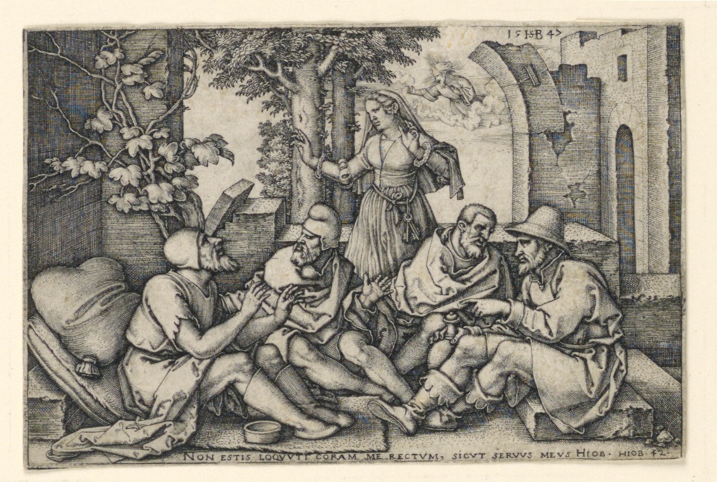 Print, Job Conversing with his Friends; Print Maker: Hans Sebald Beham (German, 1500–1550); engraving on laid paper; Gift of Leo Wallerstein; 1950-131-93
