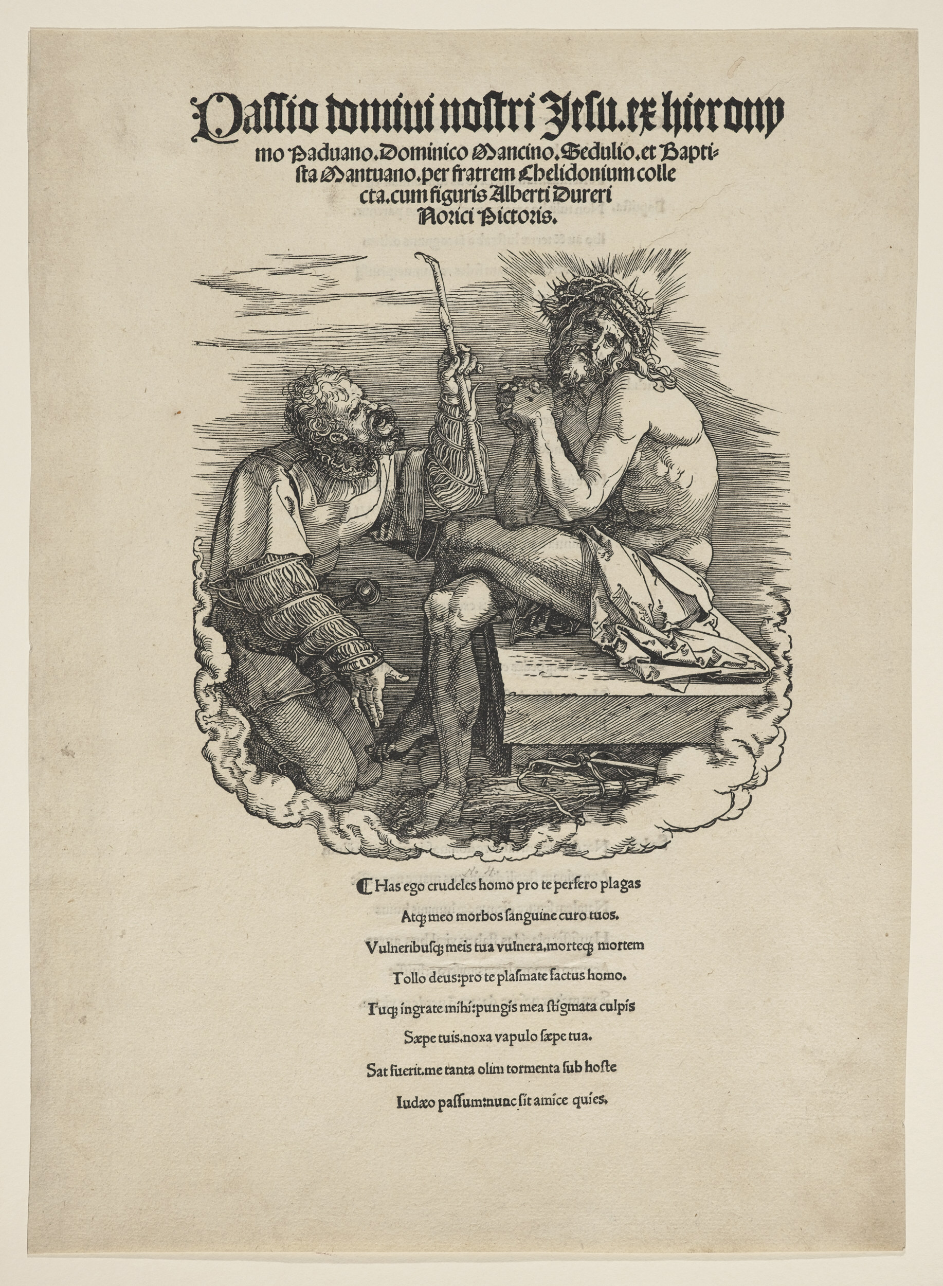 Print, Title Page, The Great Passion; Albrecht Dürer (German, 1471–1528); Germany; woodcut on laid paper; 39.2 x 28 cm (15 7/16 in. x 11 in.); 1950-30-17