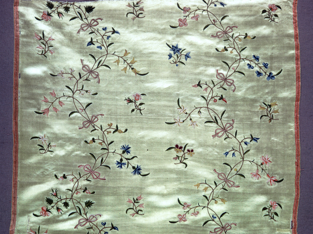 This is a Textile. We acquired it in 1950. Its medium is silk on silk and its technique is embroidered. It is a part of the Textiles department.