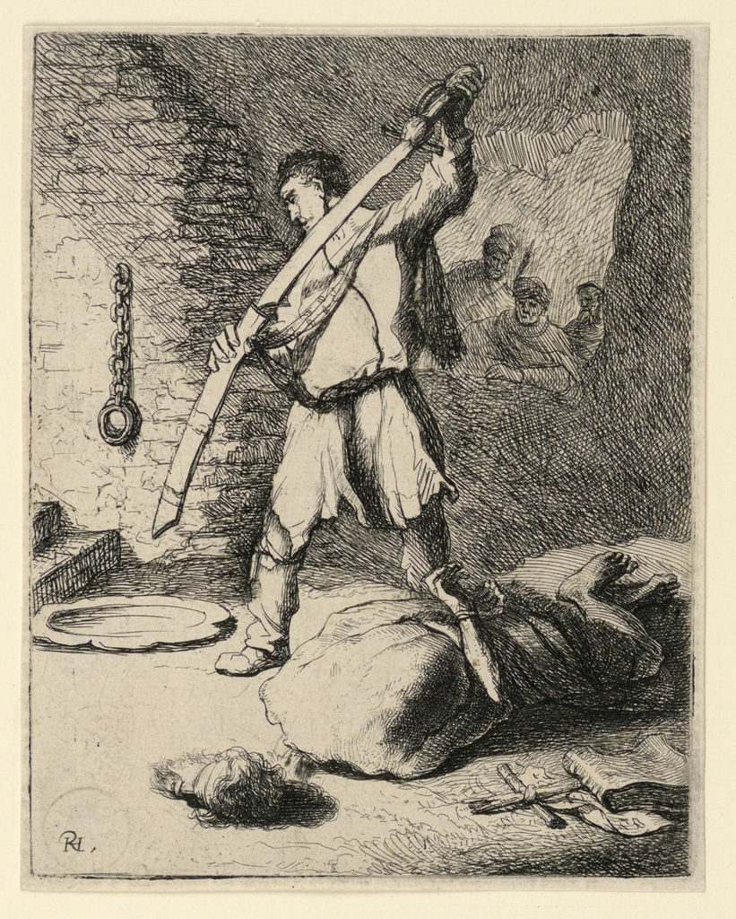 Print, The Beheading of John the Baptist; Attributed to Rembrandt Harmensz van Rijn (Dutch, 1606–1669); Netherlands; etching on laid paper; 15.8 x 12.4 cm (6 1/4 x 4 7/8 in.); Gift of Leo Wallerstein; 1950-5-12