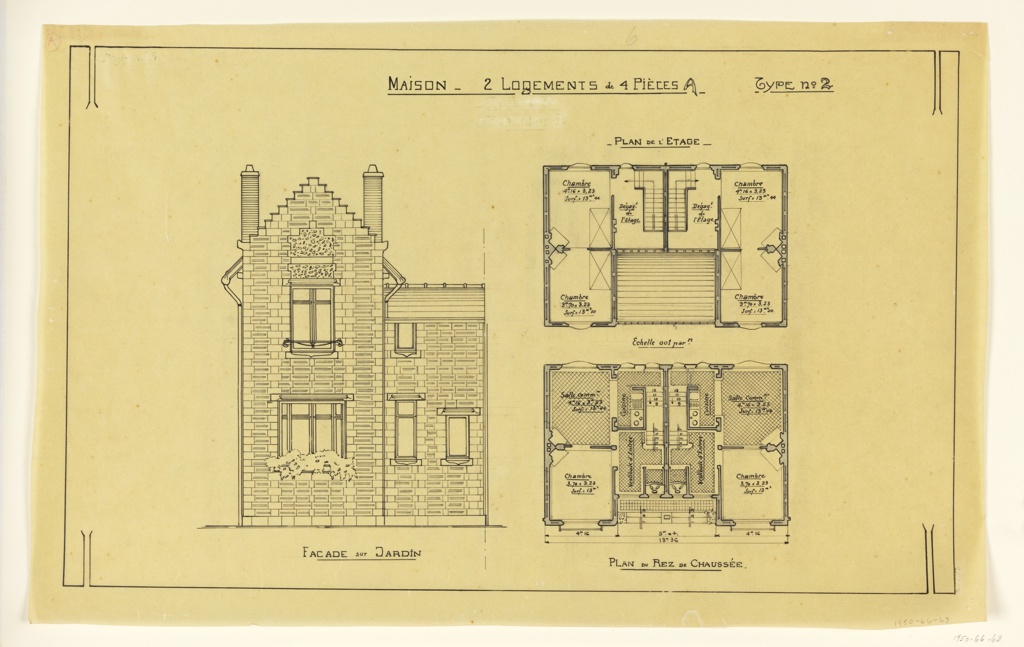 <ref name=CH>{{cite web |url=https://www-5.collection.cooperhewitt.org/objects/18385007/ |title=Drawing, Elevation and Floor Plans of a Four-Room Two-Family House (“Maison 2 Logements de 4 Pièces A”), Type No. 2 |author=Cooper Hewitt, Smithsonian Design Museum |accessdate=20 December 2025 |publisher=Smithsonian Institution}}</ref>