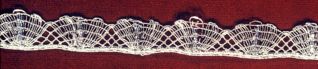 This is a Trimming. We acquired it in 1950. Its medium is threads of metal on silk and its technique is bobbin lace. It is a part of the Textiles department.