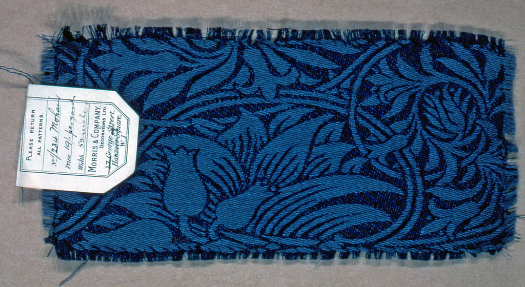 This is a Fragment. It was designed by William Morris. It is dated early 20th century and we acquired it in 1951. Its medium is wool, mohair and its technique is twill weave. It is a part of the Textiles department.