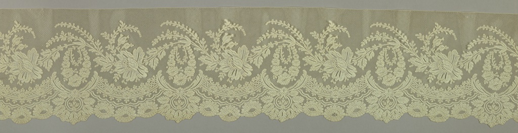 This is a Edge. It is dated 19th century and we acquired it in 1951. Its medium is linen and its technique is bobbin lace, late valencienne ground. It is a part of the Textiles department.