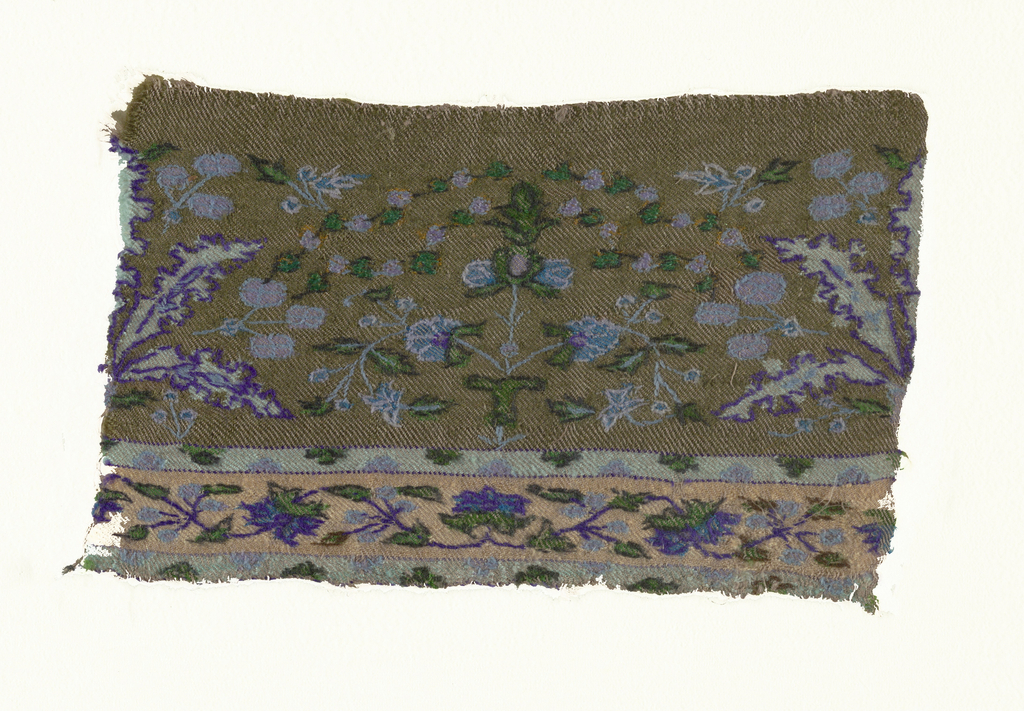 Textile (India); silk warp, wool weft; H x W: 9 × 15 cm (3 9/16 × 5 7/8 in.); Gift of Mr. and Mrs. G. Glen Gould; 1952-105-83