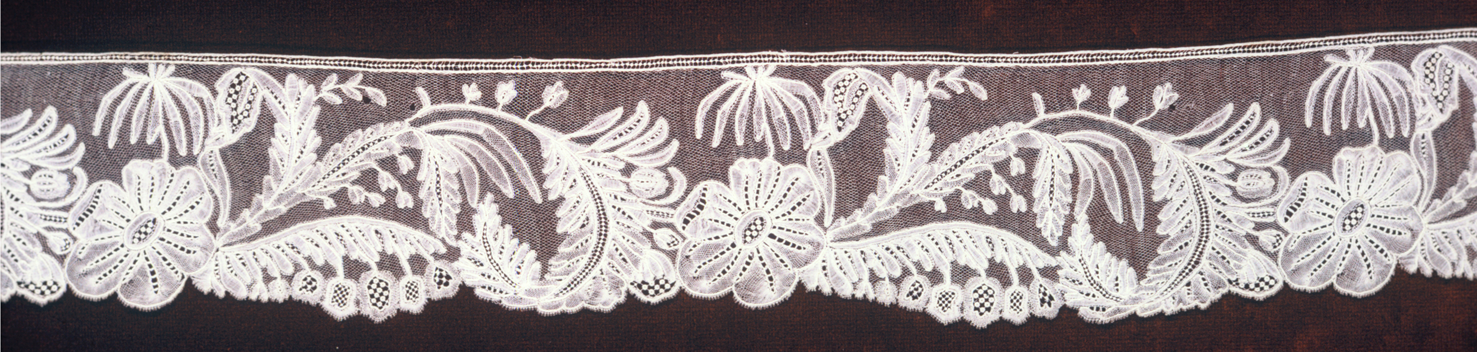 This is a Band. It is dated 19th century and we acquired it in 1952. Its medium is linen and its technique is bobbin lace with needle ground. It is a part of the Textiles department.