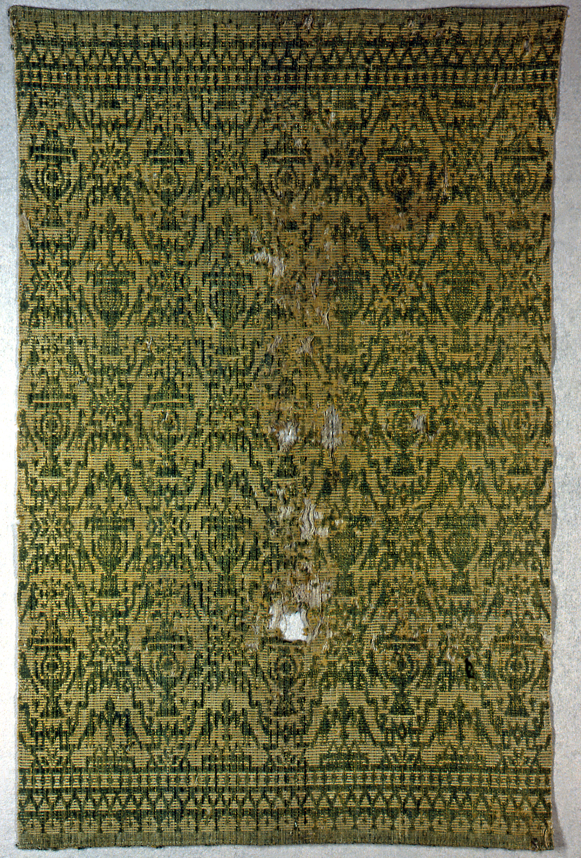 This is a Bed cover. It is dated 17th century and we acquired it in 1952. Its medium is linen, wool and its technique is plain weave with supplementary warp. It is a part of the Textiles department.