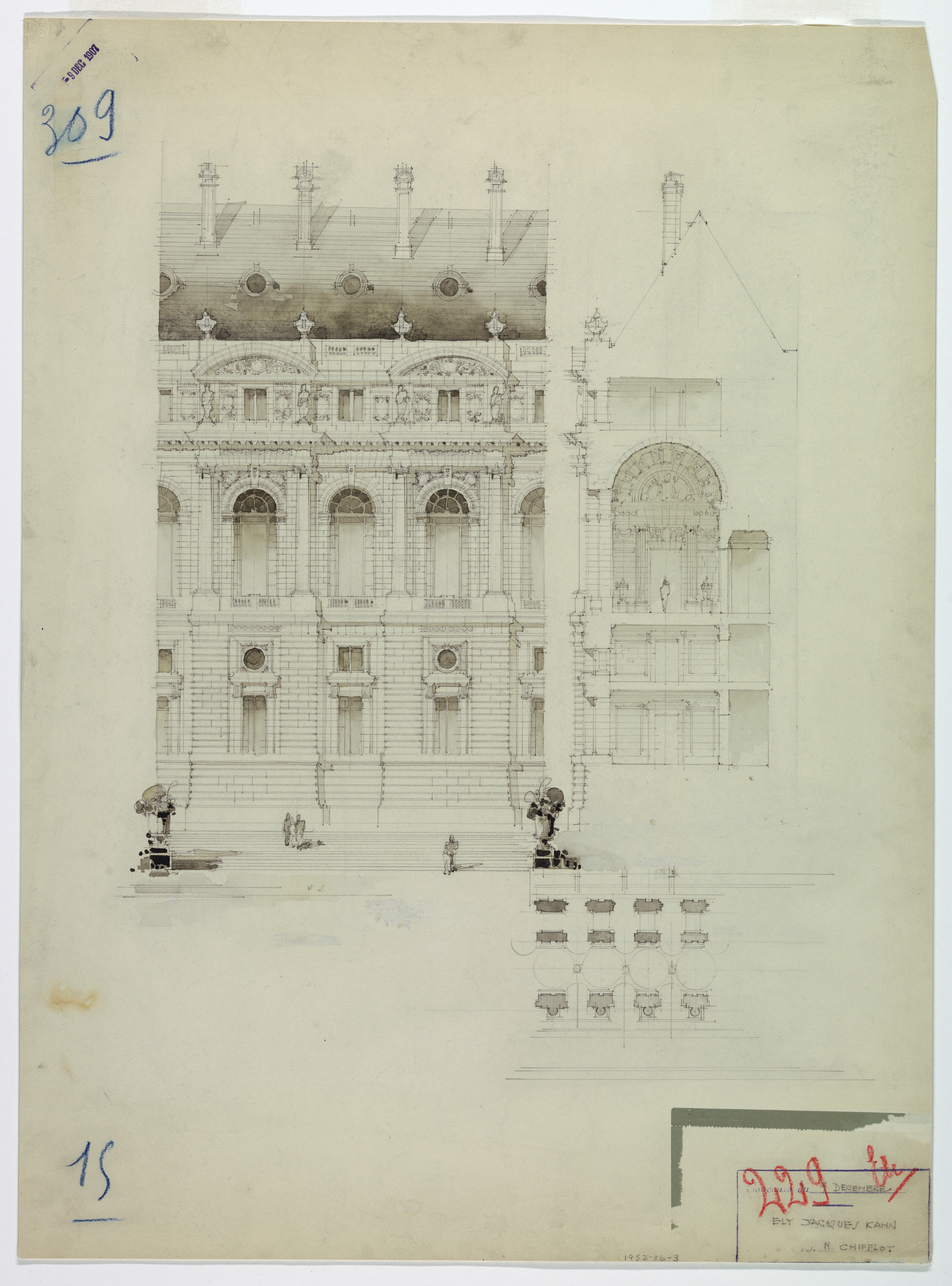 In rubber stamped box, lower right: Concours du 9 Decembre / Ely Jaques [sic] / Kahn / ...N. Chifflot.
