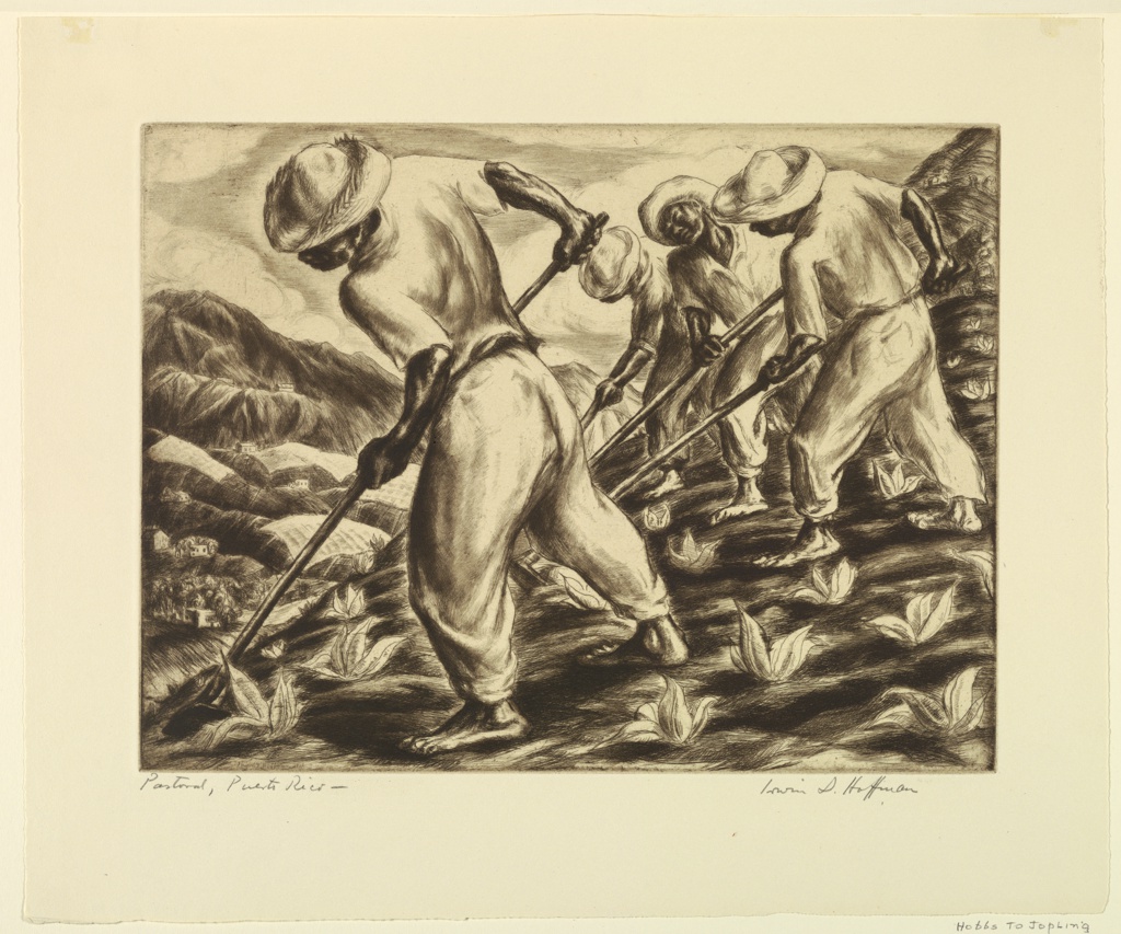 Print, Pastoral–Puerto Rico; Irwin David Hoffman (American, 1901–1989); USA; etching on cream paper; Platemark: 22.8 × 30.2 cm (9 × 11 7/8 in.) 31.8 × 38.1 cm (12 1/2 × 15 in.); Gift of William J. Donald; 1953-102-39