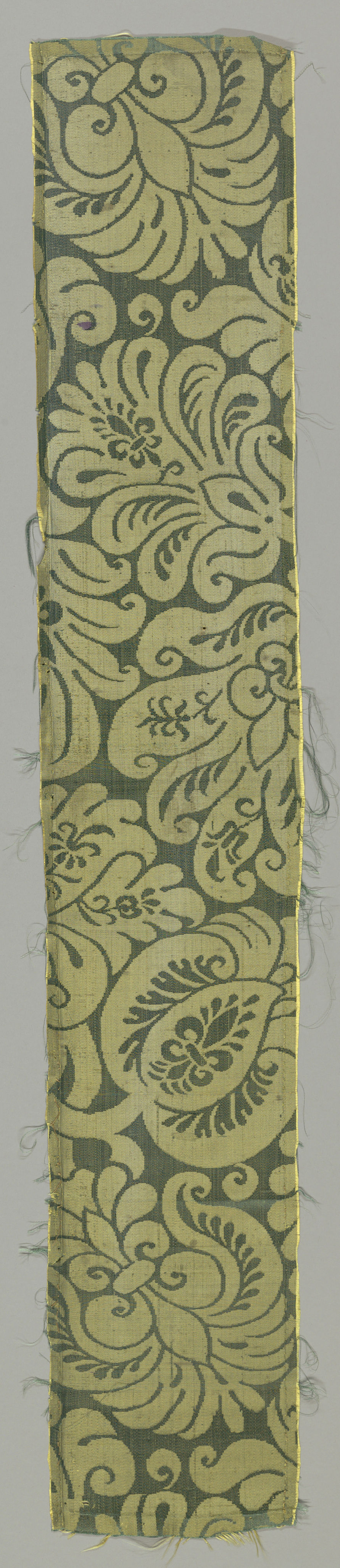 This is a Textiles. It is dated 17th century and we acquired it in 1953. Its medium is silk and its technique is damask. It is a part of the Textiles department.