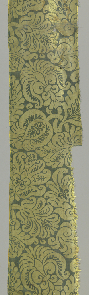 This is a Textiles. It is dated 17th century and we acquired it in 1953. Its medium is silk and its technique is damask. It is a part of the Textiles department.