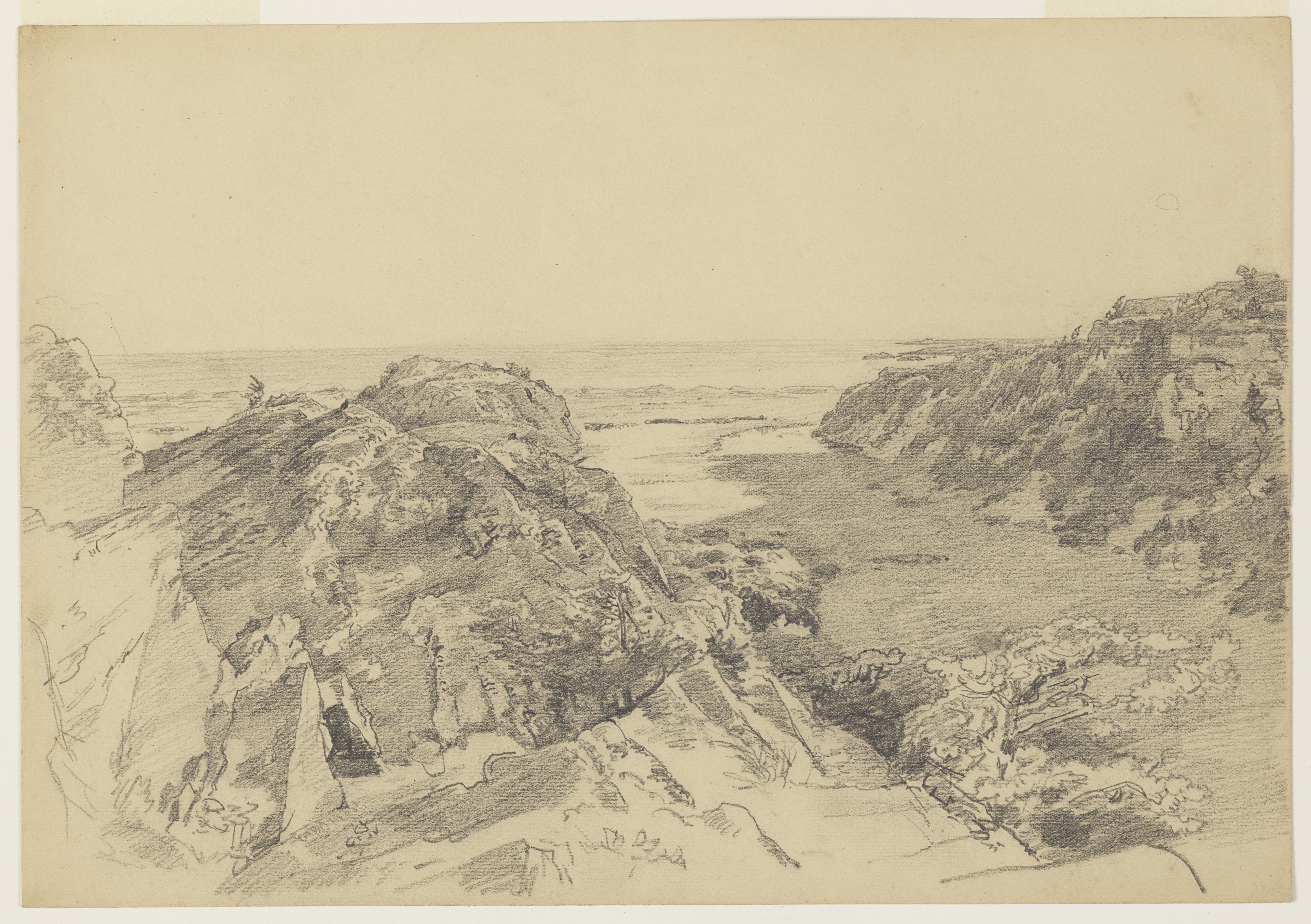 Drawing, Study for "From Paradise to Purgatory, Newport"; William Trost Richards (American, 1833–1905); USA; graphite on paper; 25.4 × 36.6 cm (10 × 14 7/16 in.); Gift of the National Academy of Design from the Mrs. William T. Brewster Bequest; 1953-179-75