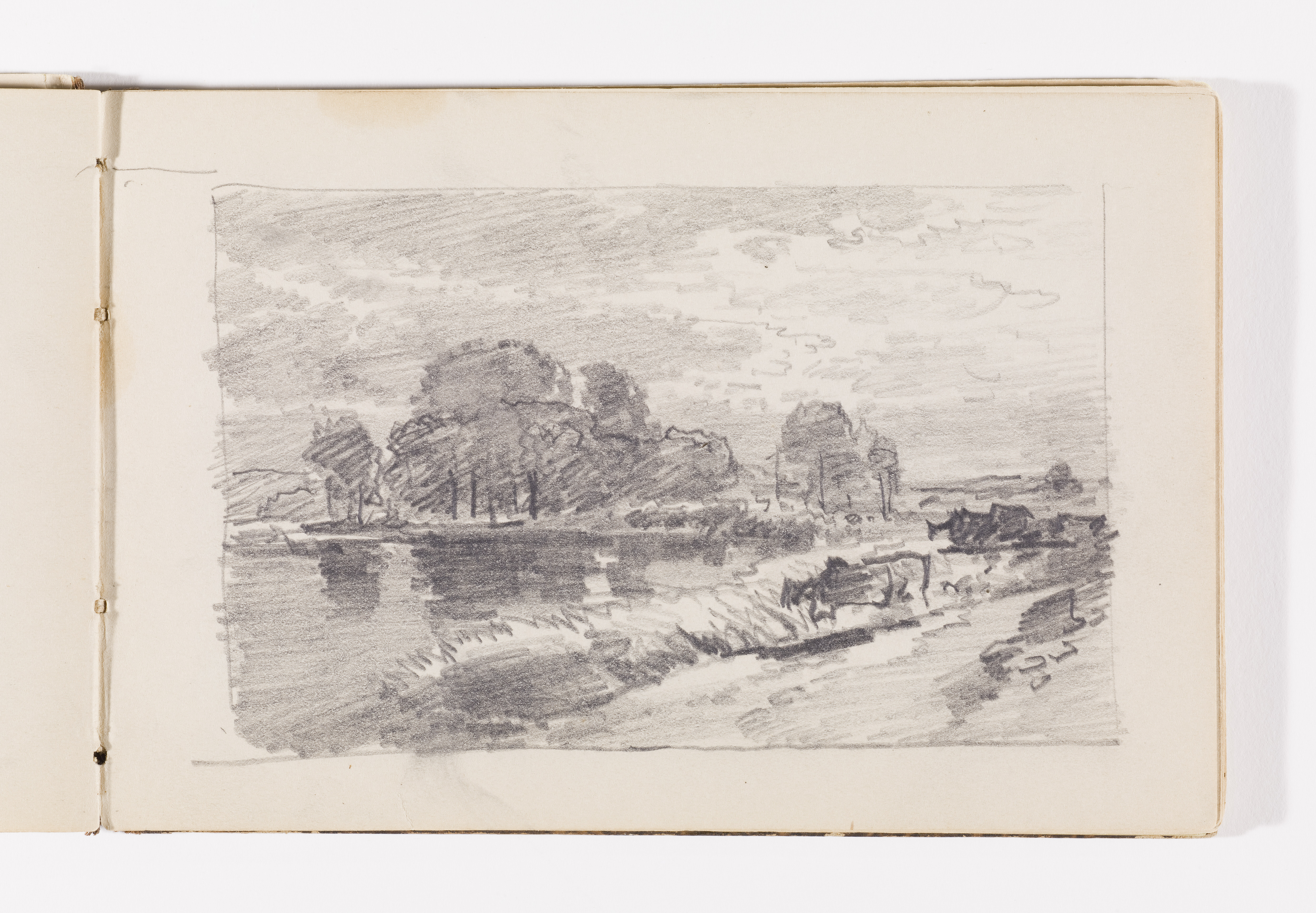 Sketchbook Folio, Countryside with Pond and Trees; William Trost Richards (American, 1833–1905); USA; graphite on cream wove paper; 9.6 x 15.1 cm (3 3/4 x 5 15/16 in.) Sheet: 12.5 x 19 cm (4 15/16 x 7 1/2 in.); Gift of the National Academy of Design from the Mrs. William T. Brewster Bequest; 1953-179-87-18