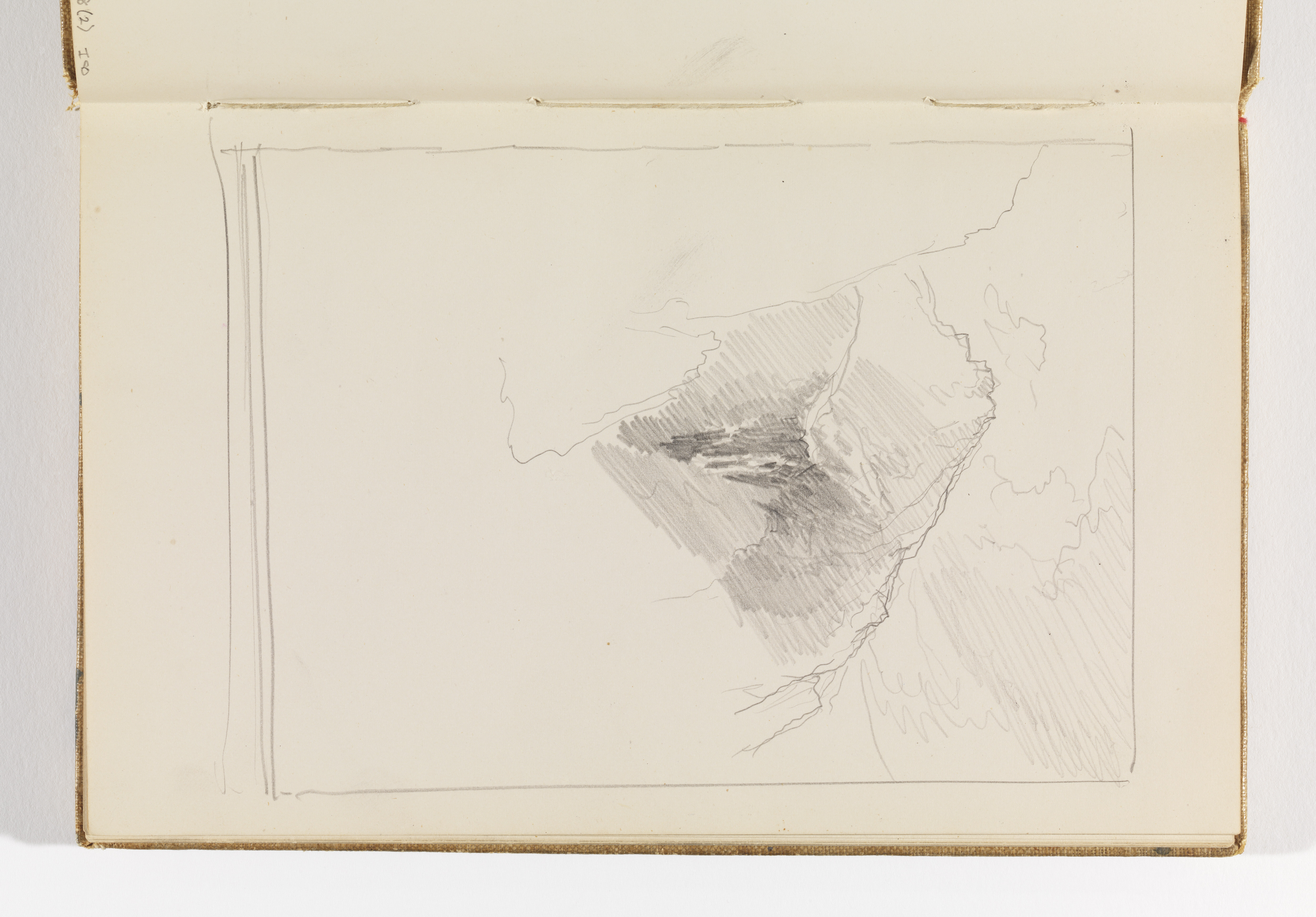 Sketchbook Folio, Unfinished Mountain Study; William Trost Richards (American, 1833–1905); USA; graphite on cream wove paper; 21.5 x 13.7 cm (8 7/16 x 5 3/8 in.) Image: 16.1 x 12 cm (6 5/16 x 4 3/4 in.); Gift of the National Academy of Design from the Mrs. William T. Brewster Bequest; 1953-179-88-3