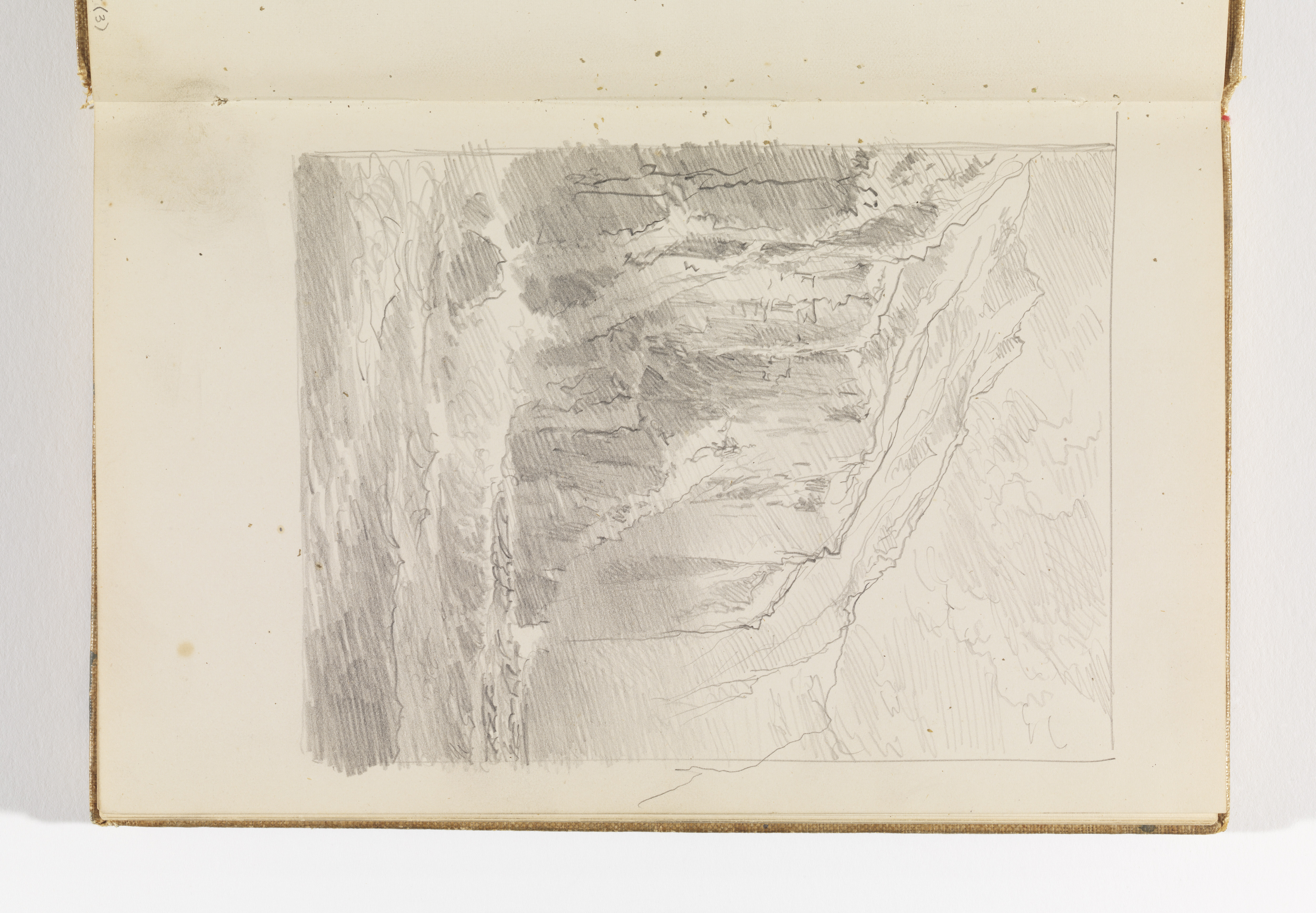 Sketchbook Folio, Cornish Sea Coast and Perpendicular Cliffs; William Trost Richards (American, 1833–1905); USA; graphite on cream wove paper; 21.5 x 13.7 cm (8 7/16 x 5 3/8 in.) Image: 15.5 x 11.6 cm (6 1/8 x 4 9/16 in.); Gift of the National Academy of Design from the Mrs. William T. Brewster Bequest; 1953-179-88-4