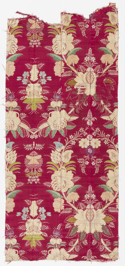 This is a Textile. It is dated 18th century and we acquired it in 1953. Its medium is silk and its technique is compound satin weave with supplementary weft. It is a part of the Textiles department.
