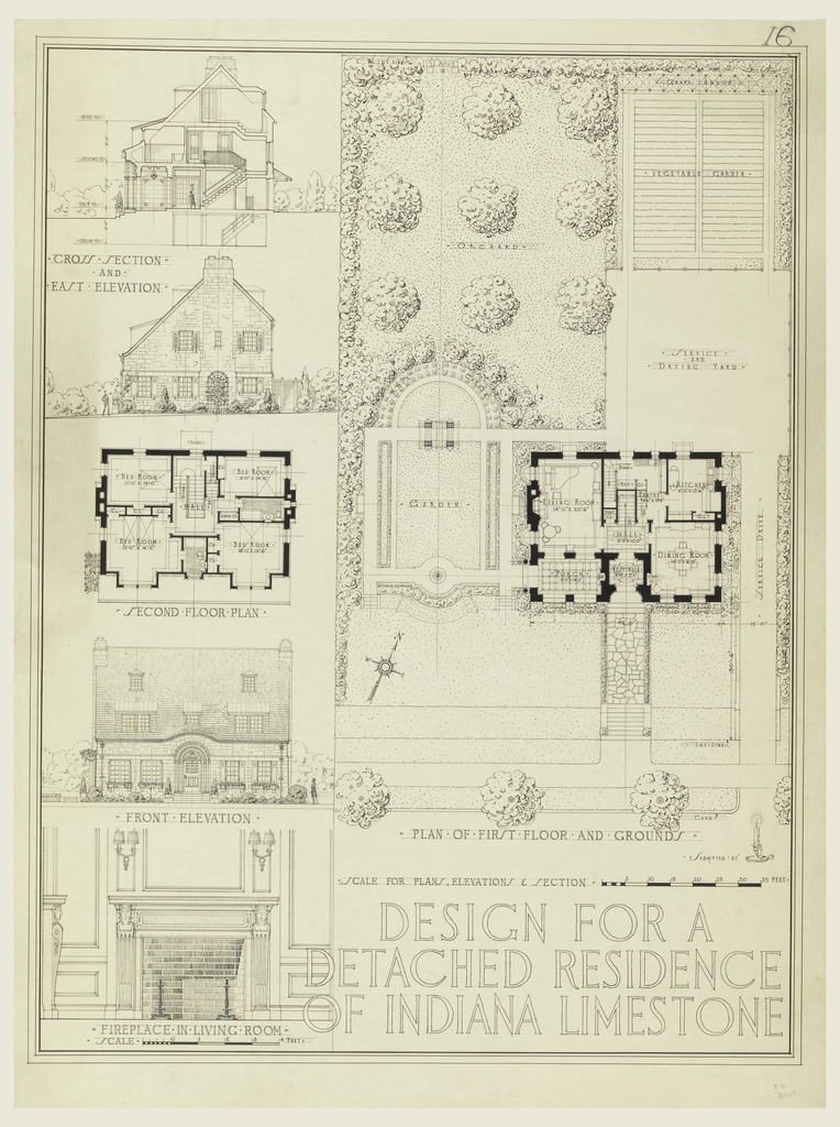 Inscribed in black ink, lower right: DESIGN FOR A / DETACHED RESIDENCE / OF INDIANA LIMESTONE