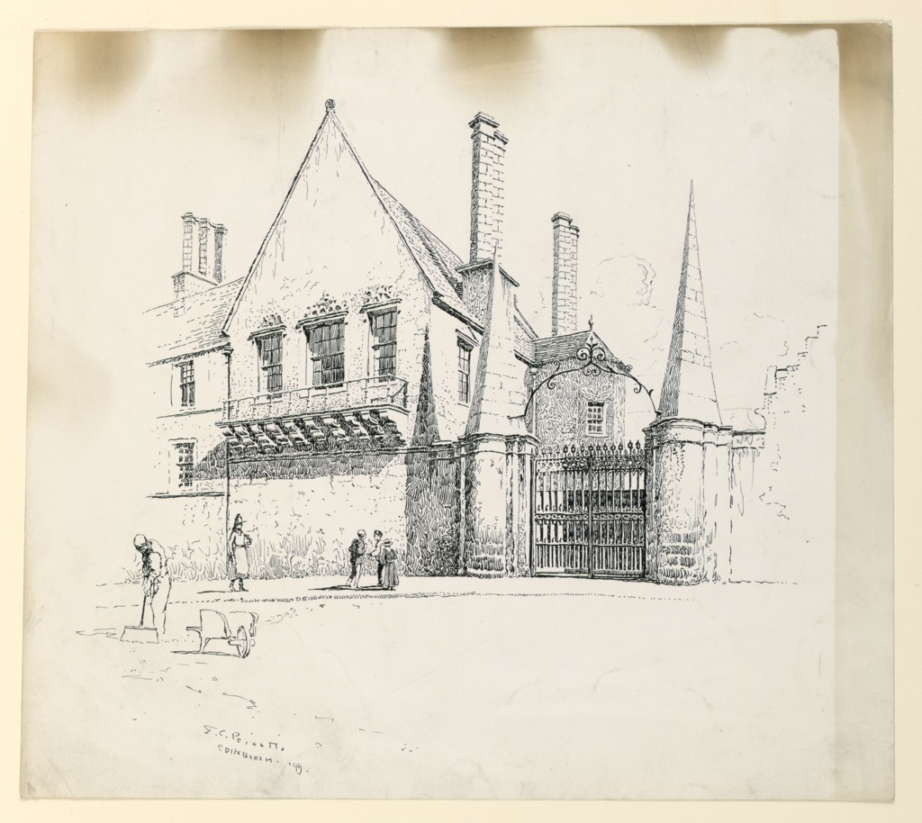 Drawing, The Moray House, Edinburgh; Ernest Clifford Peixotto (American, 1869–1940); Published by Charles Scribner's Sons; USA; pen and ink on illustration board; 26.5 × 29.9 cm (10 7/16 × 11 3/4 in.); 1953-48-15