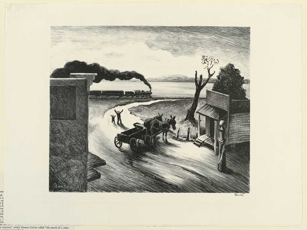 This is a Print. It was created by Thomas Hart Benton and printed by George C. Miller, New York and published by Associated American Artists. It is dated 1938 and we acquired it in 1954. Its medium is lithograph in black ink on paper. It is a part of the Drawings, Prints, and Graphic Design department.