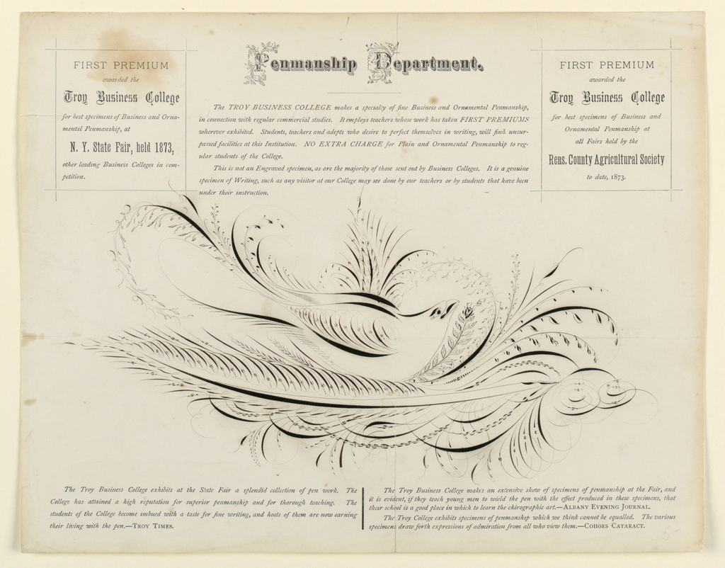 Print, Penmanship Department, Troy Business College; USA; engraving, pen and black ink; Gift of William J. Donald; 1954-18-31