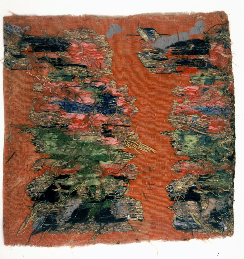 Fragment; silk, metallic thread on a silk core; H x W: 23.3 × 23.6 cm (9 3/16 × 9 5/16 in.); Gift of Harvey Smith; 1954-82-8