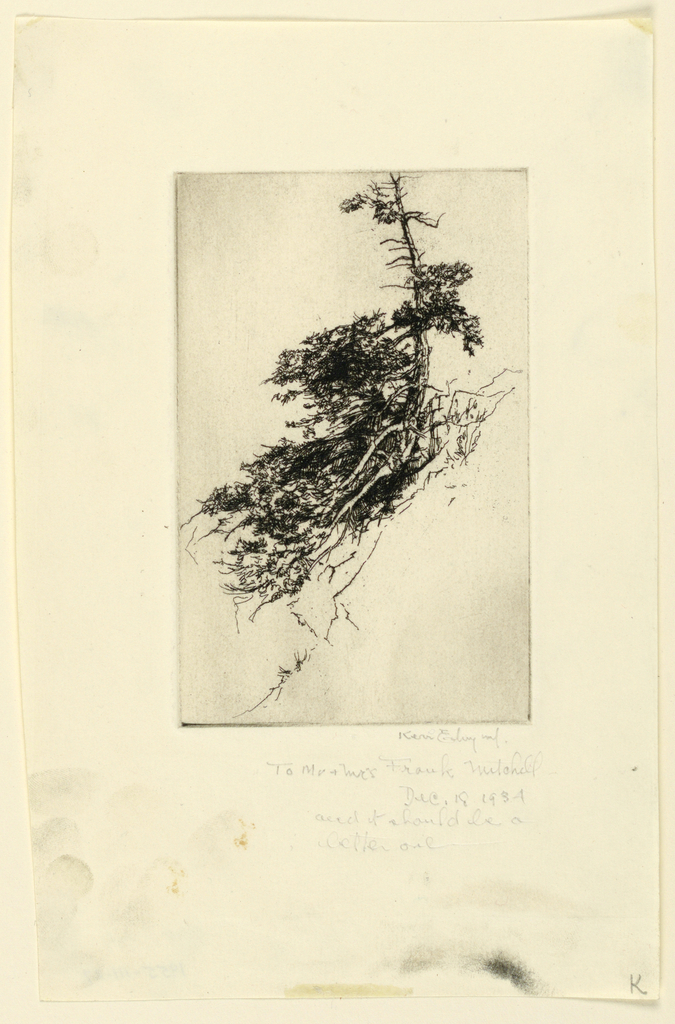 Inscribed in graphite, lower right: To Mr + Mrs Frank Mitchell / Dec. 18 1934 / and it should be a / better one; lower right corner: K