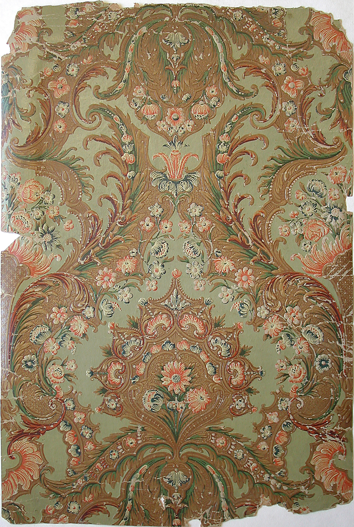 Sidewall (possibly France); block-printed paper, embossed, hand-rubbed oil finish; 70 x 47 cm (27 9/16 x 18 1/2 in.); Gift of Anonymous Donor; 1955-156-7