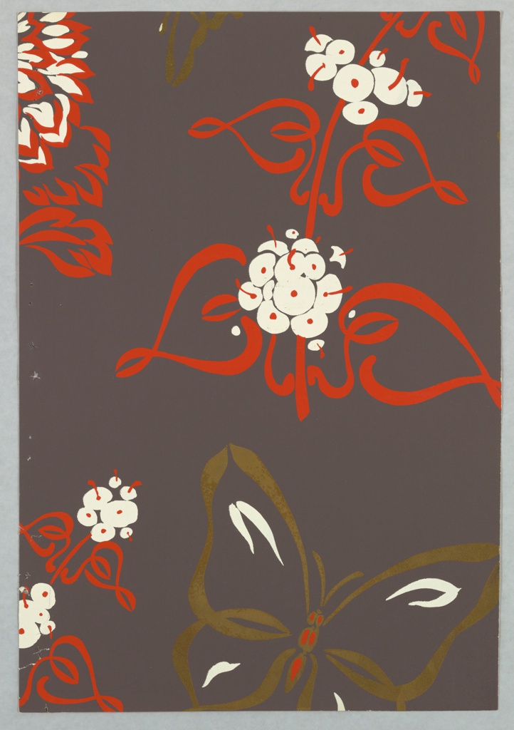 This is a Sidewall - sample. It was manufactured by Wilton E. Owen, Inc.. It is dated 1954–55 and we acquired it in 1955. Its medium is screen printed. It is a part of the Wallcoverings department.