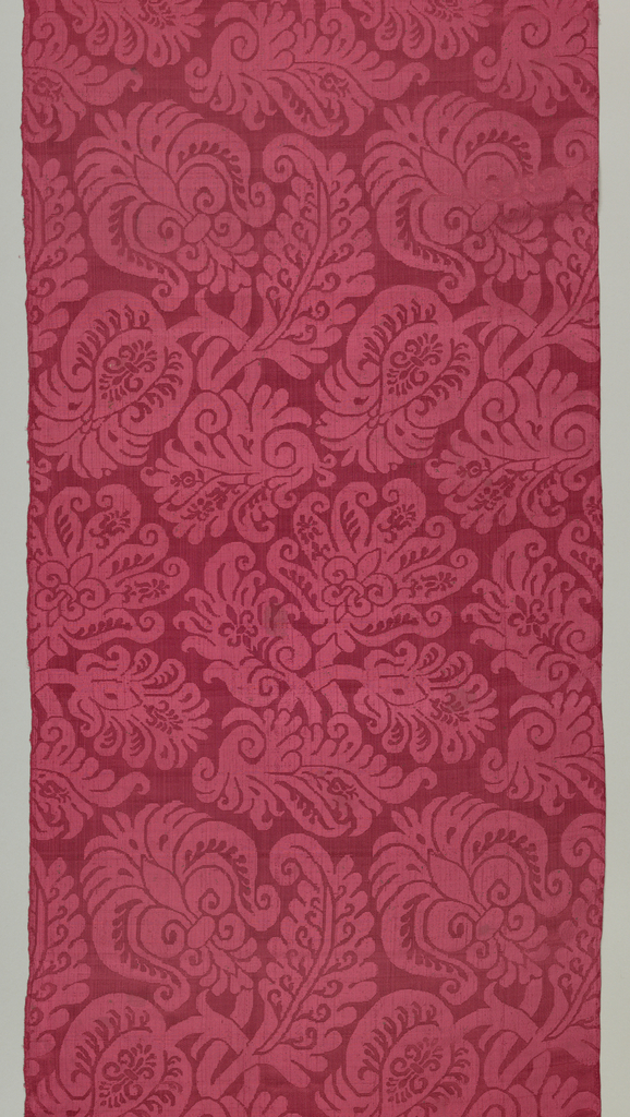 Textile (Italy); silk; Warp x Weft: 199 x 52 cm (6 ft. 6 3/8 in. x 20 1/2 in.) Warp x Weft: 200 x 52 cm (6 ft. 6 3/4 in. x 20 1/2 in.) Repeat H: 62 x 26 cm (24 7/16 x 10 1/4 in.); Gift of L. Boyd and Annie McQuarrie Hatch; 1955-25-5-a,b