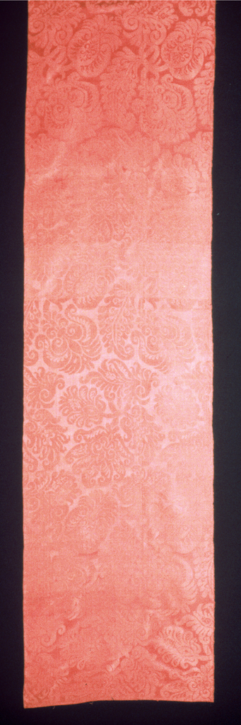 This is a Textile. We acquired it in 1955. Its medium is silk and its technique is 4&1 satin damask. It is a part of the Textiles department.