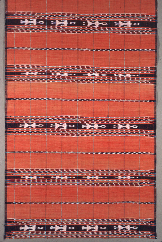 This is a Skirt. It is dated 1925–50 and we acquired it in 1955. Its medium is cotton and its technique is weft resist dyed before weaving (jaspe), plain weave. It is a part of the Textiles department.
