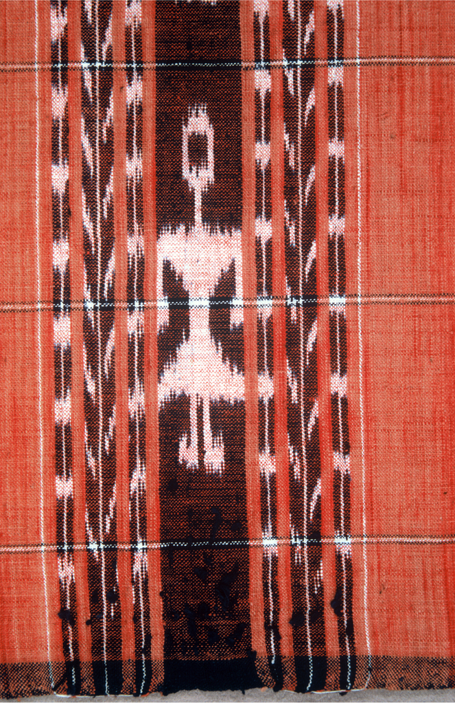 This is a Skirt. It is dated 1925–50 and we acquired it in 1955. Its medium is cotton and its technique is weft resist dyed before weaving (jaspe), plain weave. It is a part of the Textiles department.