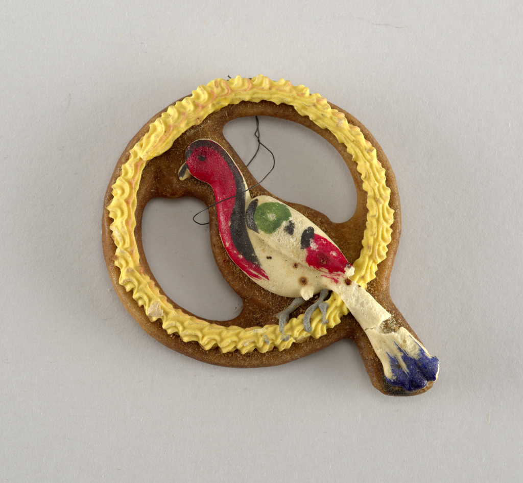 This is a Ornament, Christmas tree. It is dated 1850–99 and we acquired it in 1956. Its medium is dough and sugar. It is a part of the Product Design and Decorative Arts department.