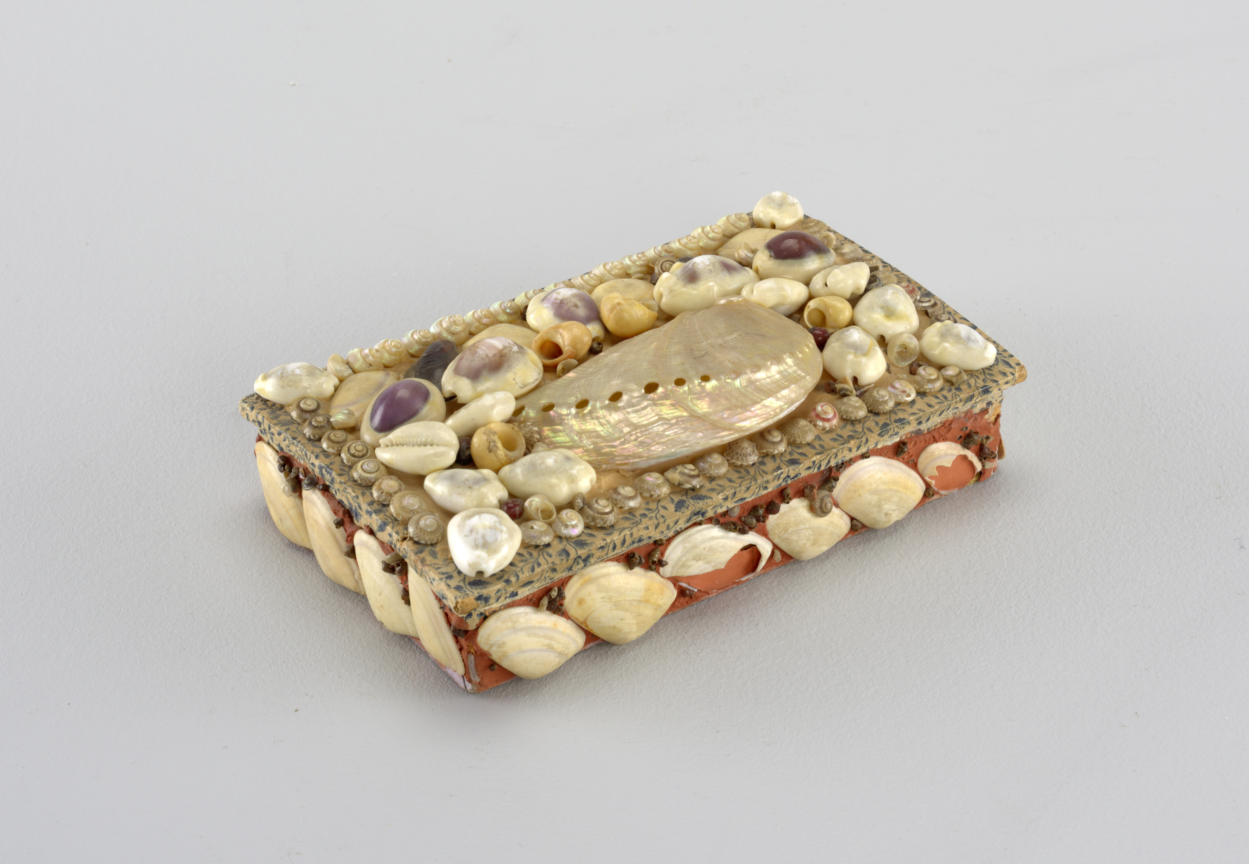 Box (USA); wood, shells, paper; H x W x D: 9.4 x 5.5 x 3 cm (3 11/16 x 2 3/16 x 1 3/16 in.); Gift of Mary M. Kenway from the estate of Sarah B. Russell; 1956-32-72