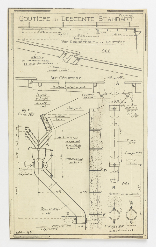 <ref name=CH>{{cite web |url=https://www-5.collection.cooperhewitt.org/objects/18411009/ |title=Drawing, Design for a Mass-Operational House Designed by Hector Guimard, Drainspout Construction |author=Cooper Hewitt, Smithsonian Design Museum |accessdate=20 December 2025 |publisher=Smithsonian Institution}}</ref>