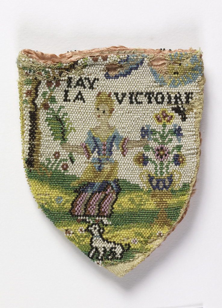This is a Purse. It is dated 18th century and we acquired it in 1957. Its medium is silk, glass beads and its technique is looping incorporating strung beads. two panels worked separately. It is a part of the Textiles department.