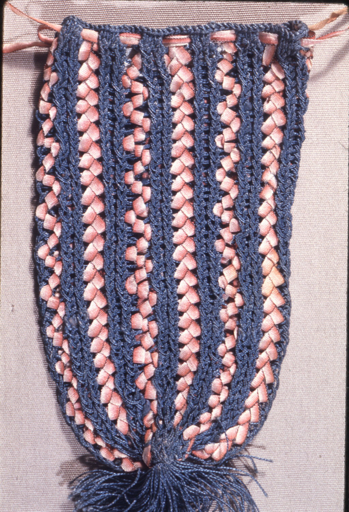 This is a Bag. It is dated early 19th century and we acquired it in 1957. Its medium is silk and its technique is knitted. It is a part of the Textiles department.