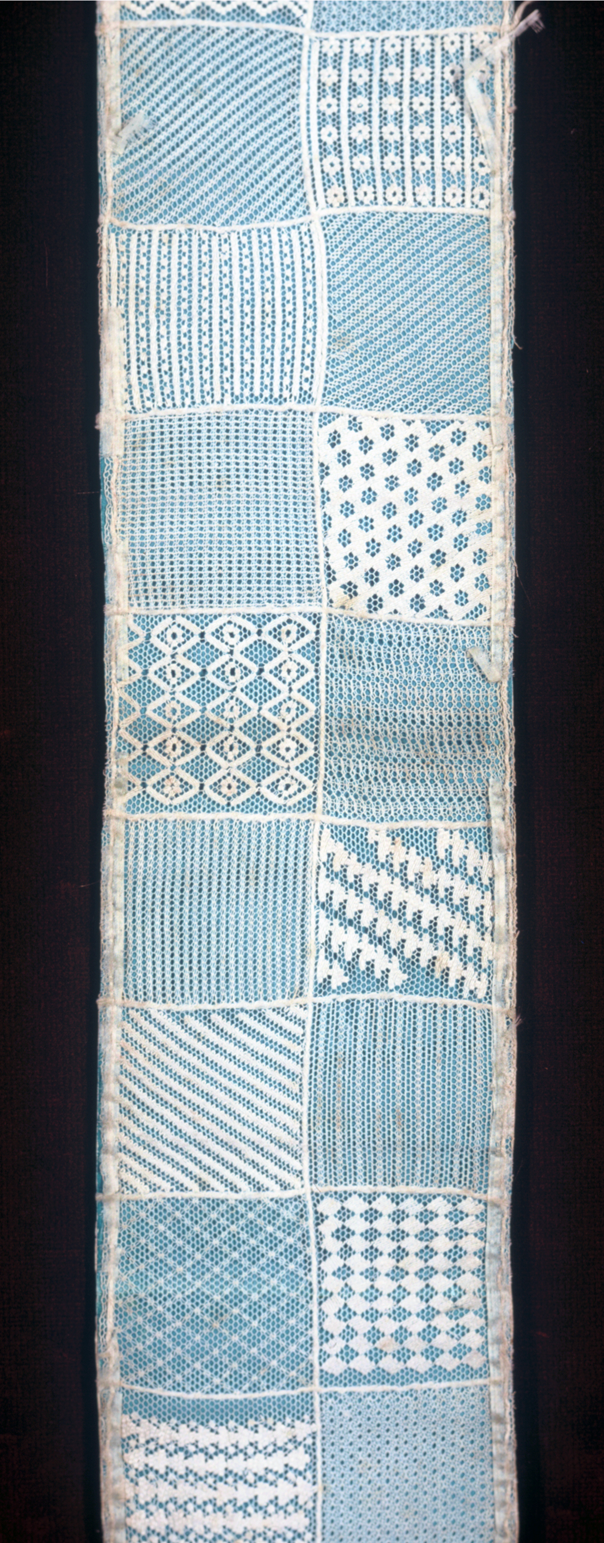 Sampler (Germany); cotton, paper; H x W: 150 x 8.5 cm (59 1/16 x 3 3/8 in.); Gift of the estate of Mrs. Lathrop Colgate Harper; 1957-180-43