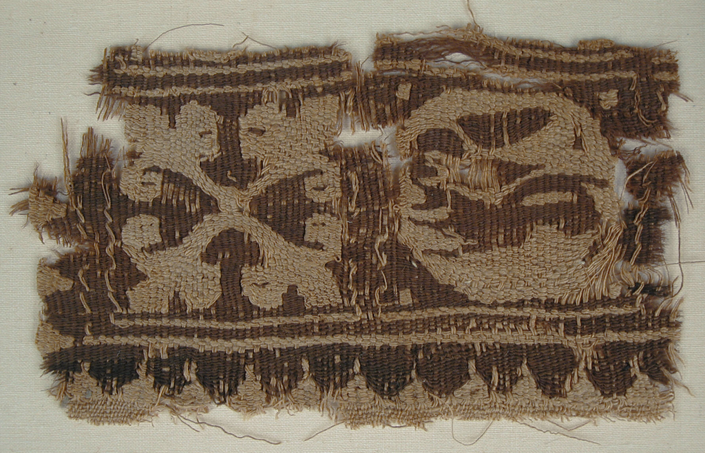 Fragment; z-spun wool, s-spun linen, dye; Gift of the estate of Mrs. Lathrop Colgate Harper; 1957-180-56