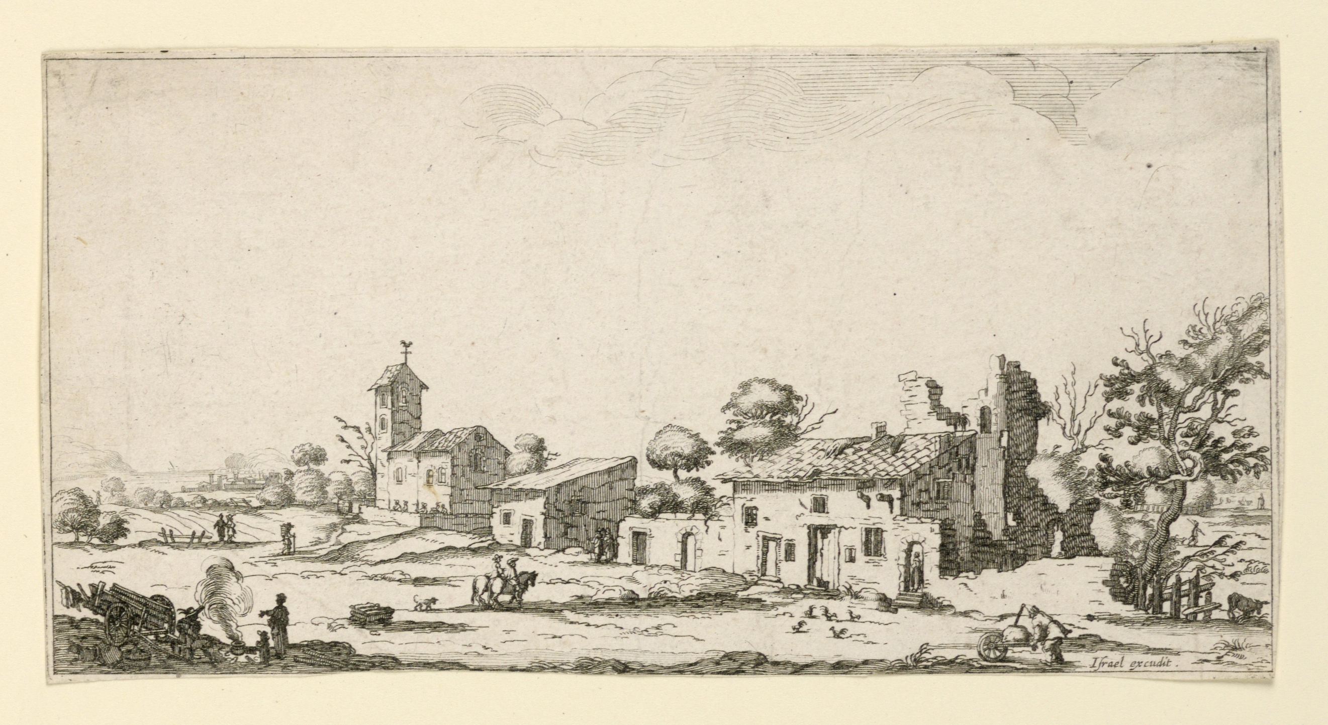 Print, Landscape With Ruined Houses; Print Maker: Israel Silverstre (1621 - 1691); France; etching on paper; 10.7 × 20.9 cm (4 3/16 × 8 1/4 in.); 1957-41-78