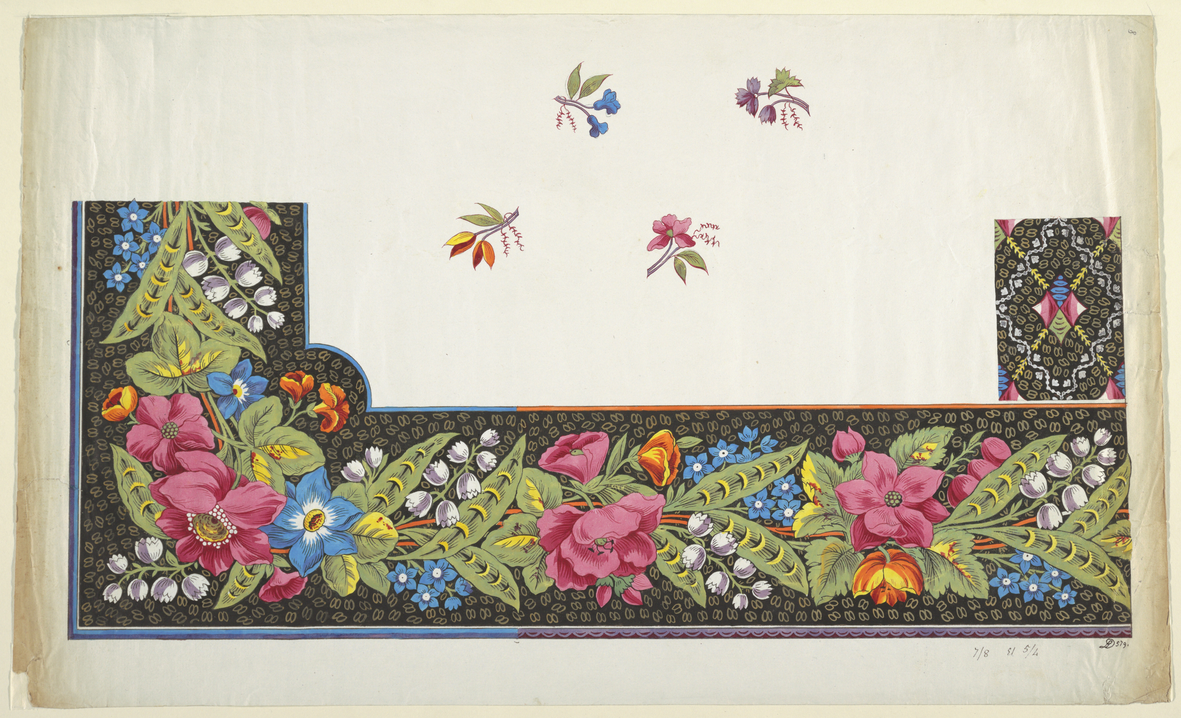This is a Drawing. It was created by Louis-Albert DuBois and manufactured by Fabrique de Fazy aux Bergues. It is dated ca. 1801 and we acquired it in 1957. Its medium is brush and gouache, graphite on white laid paper. It is a part of the Drawings, Prints, and Graphic Design department.