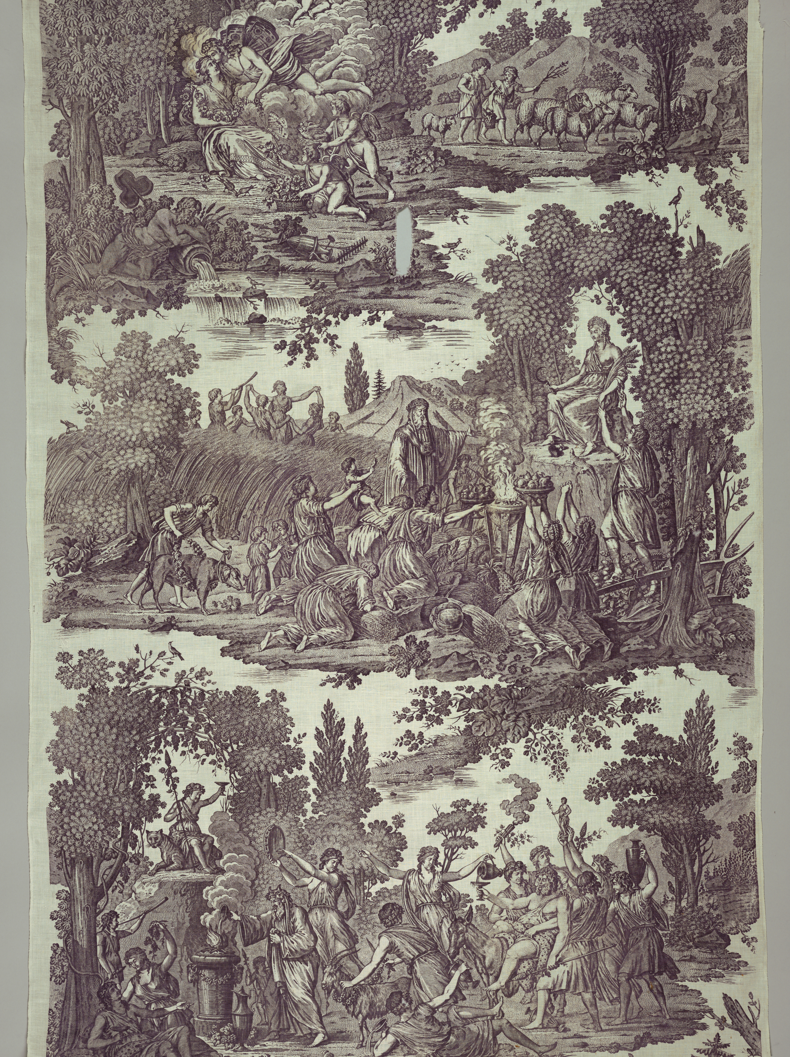 Textile, The Four Seasons; Possibly by Bonaventure M. Lebert (1759–1836); Manufactured by Hartmann et Fils (France); Northern France; cotton; H x W: 147 x 100 cm (57 7/8 x 39 3/8 in.); Museum purchase from Au Panier Fleuri Fund; 1957-51-5