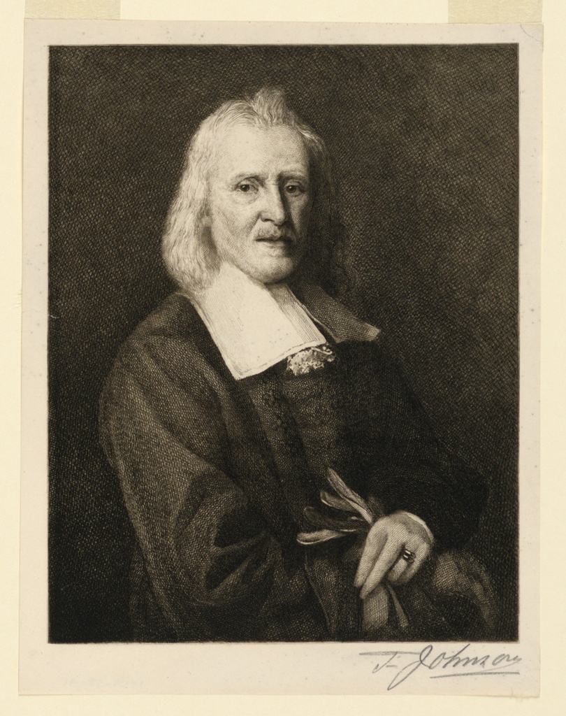 This is a Print. It was created by Thomas Johnson. It is dated 1900 and we acquired it in 1957. Its medium is etching in dark brown ink on cream-colored paper. It is a part of the Drawings, Prints, and Graphic Design department.
