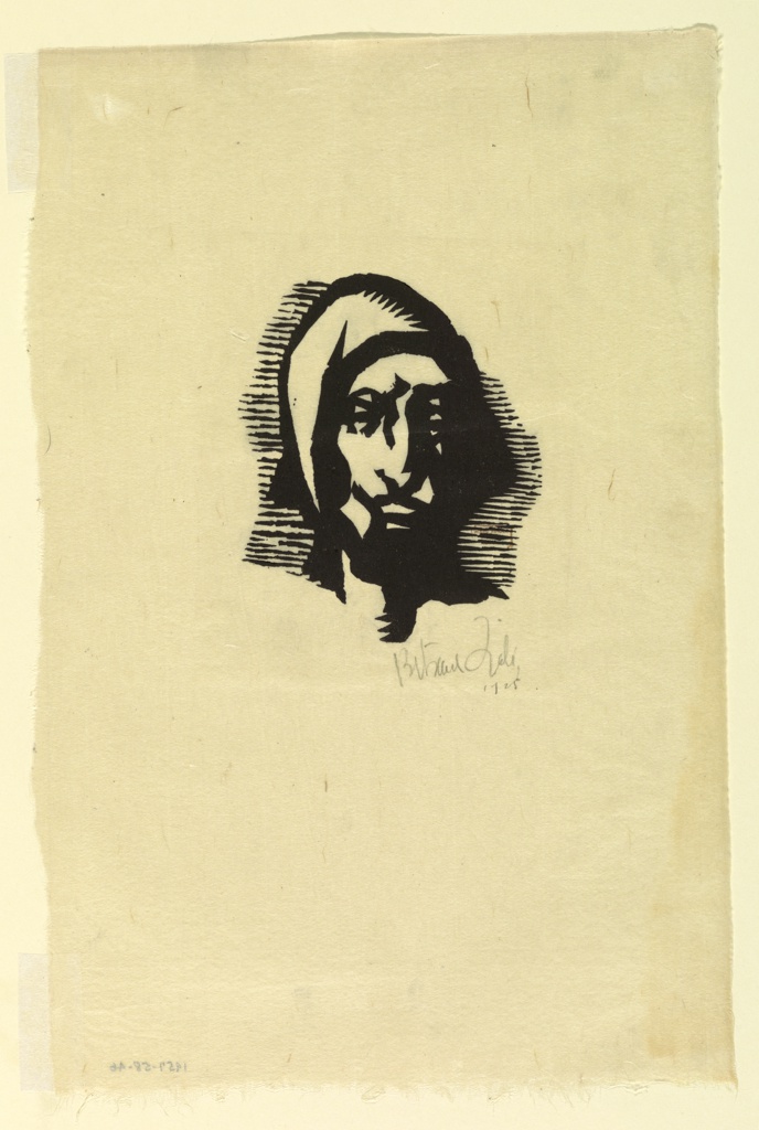 Print, Head of a Man; William Zadig (Swedish, 1884–1952); USA; woodcut in black ink on cream-colored mulberry paper; Platemark: 14 × 11 cm (5 1/2 × 4 5/16 in.) 33.5 × 22.3 cm (13 3/16 × 8 3/4 in.); Gift of F. Elizabeth De Voy; 1957-58-46