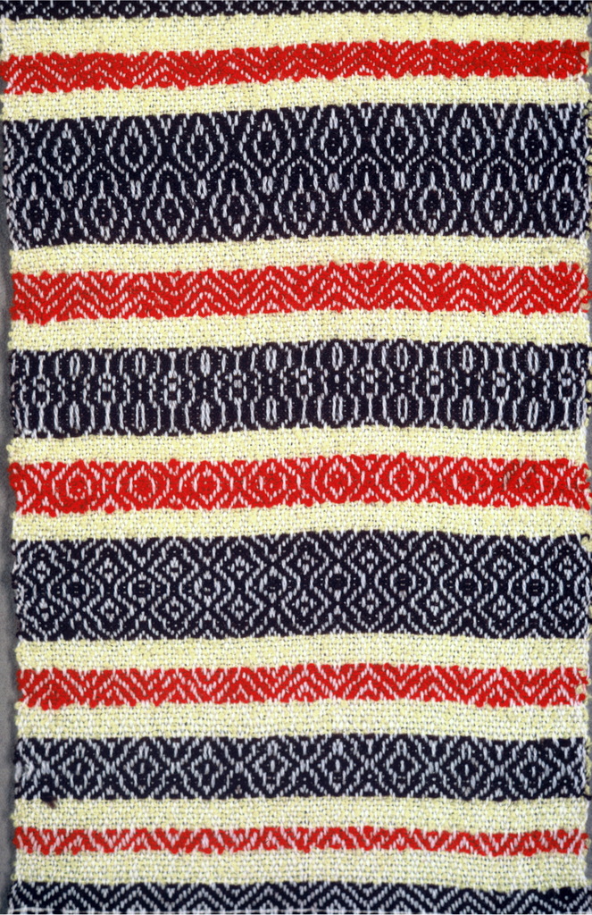 This is a Textile. It was designed by Maria Mundal and woven by Maria Mundal. It is dated mid-20th century and we acquired it in 1957. Its medium is wool and its technique is twill woven, plain weave. It is a part of the Textiles department.