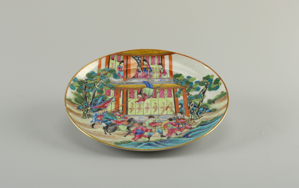 This is a plate. We acquired it in 1959. Its medium is porcelain. It is a part of the Product Design and Decorative Arts department.